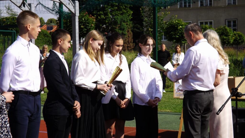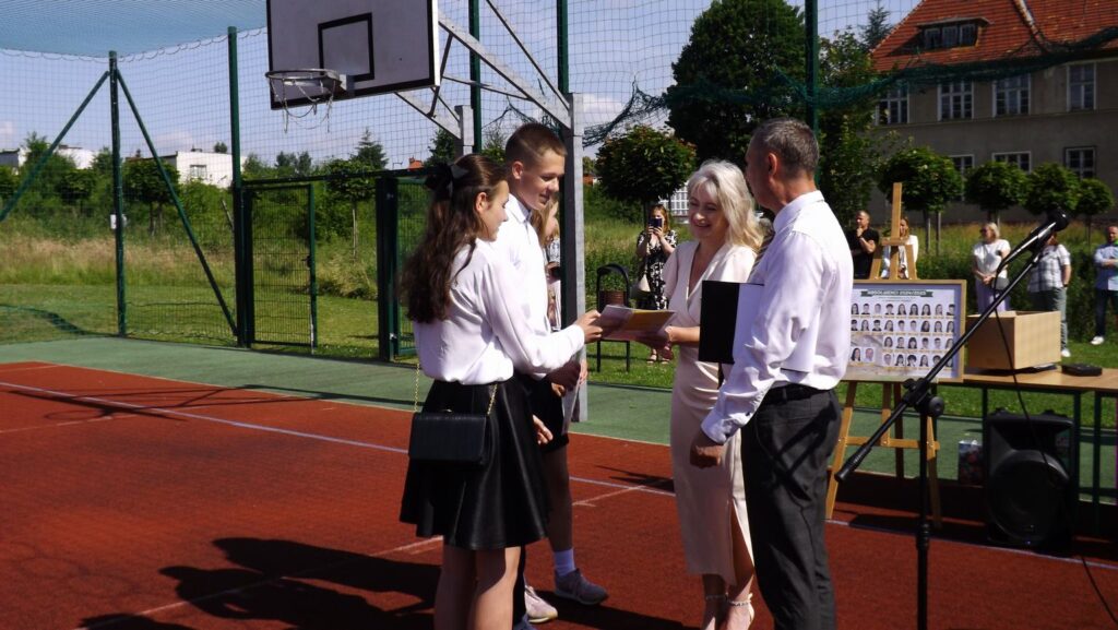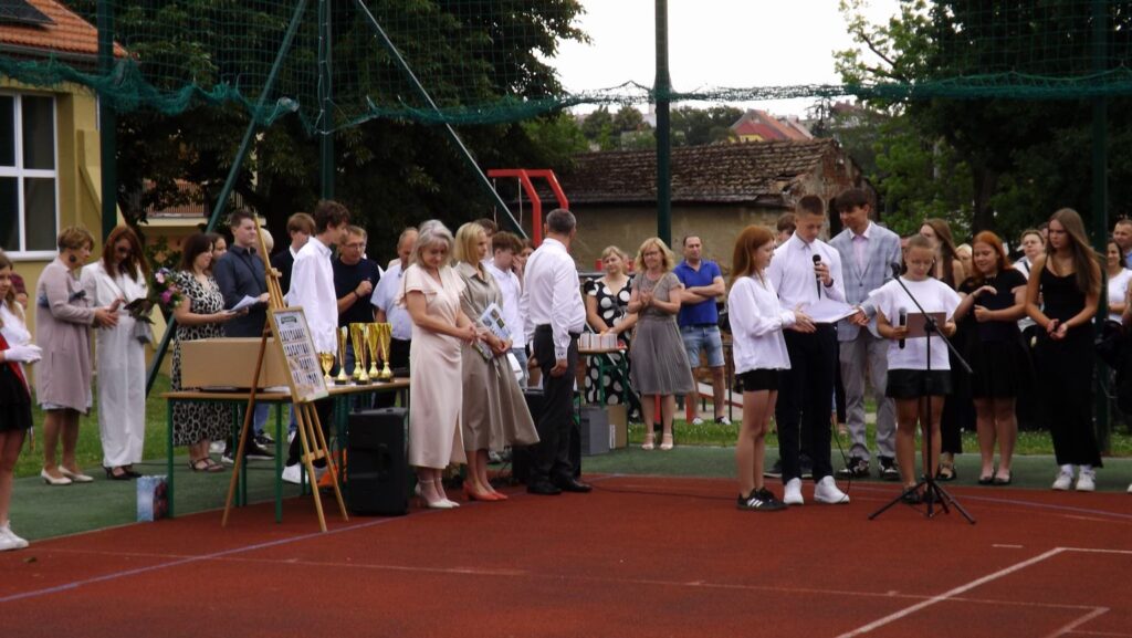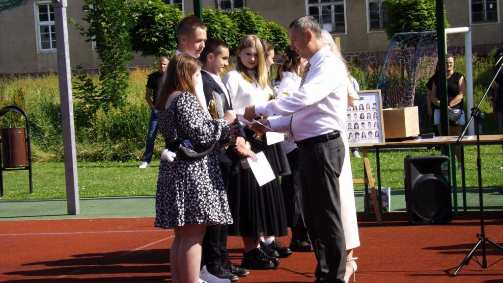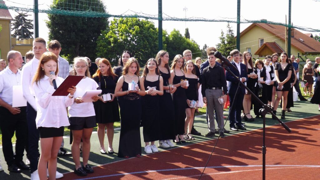 Dziś żegnaliśmy ósmoklasistów, którzy ukończyli kolejny etap swojej edukacyjnej podróży. To moment pełen emocji, zarówno dla uczniów, jak i dla nauczycieli oraz rodziców. Pożegnania są trudne, ale również stanowią początek czegoś nowego. Życzymy naszym absolwentom, aby z odwagą i determinacją wkroczyli w nowe etapy swojego życia. Niech zdobyta wiedza i doświadczenia będą solidnym fundamentem na przyszłość! Niezależnie od tego, jaką drogę wybiorą, życzymy im, aby zawsze kierowali się pasją i odwagą w dążeniu do celu !