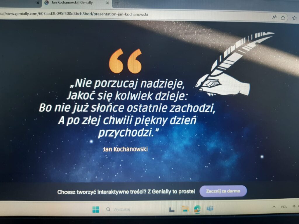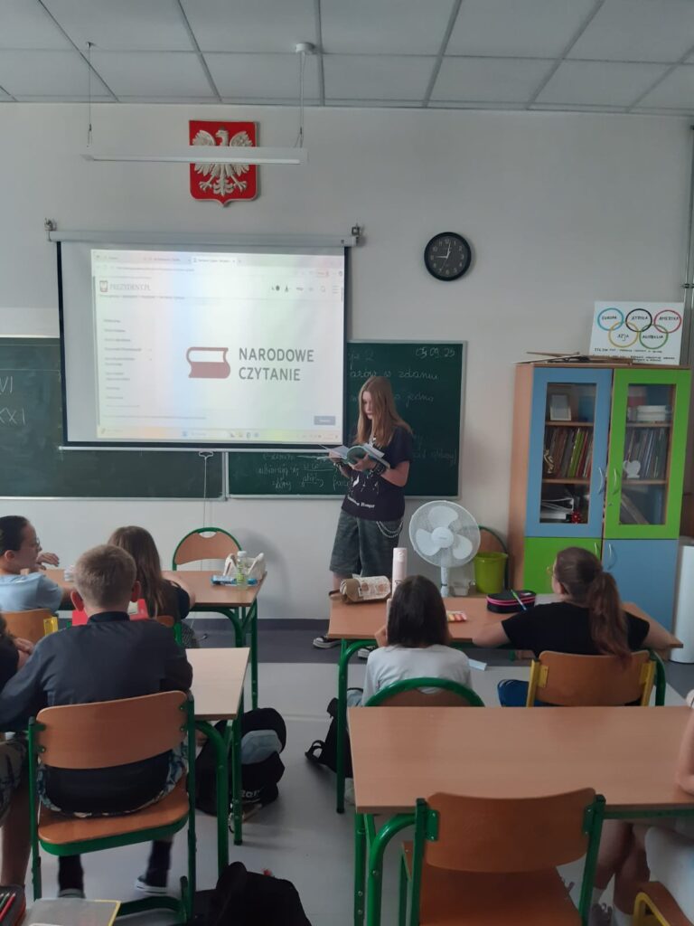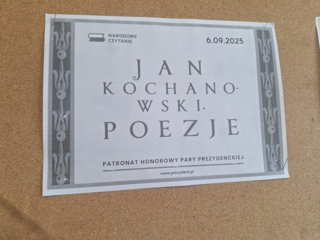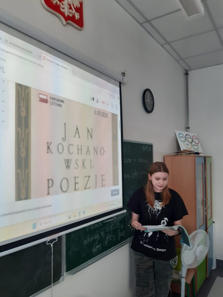 Klasa 8a w ramach Narodowego Czytania zapoznała się z biografią Jana Kochanowskiego oraz czytała i analizowała wybrane fraszki poety.