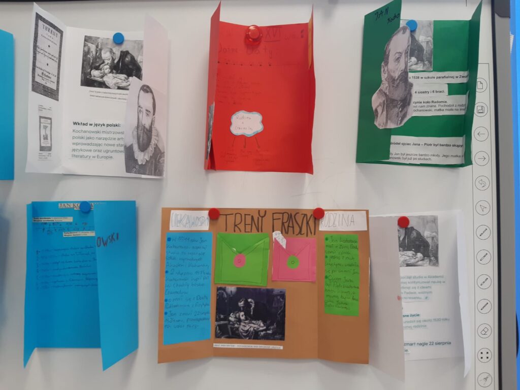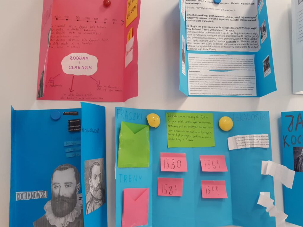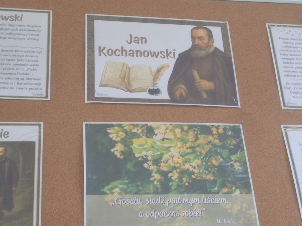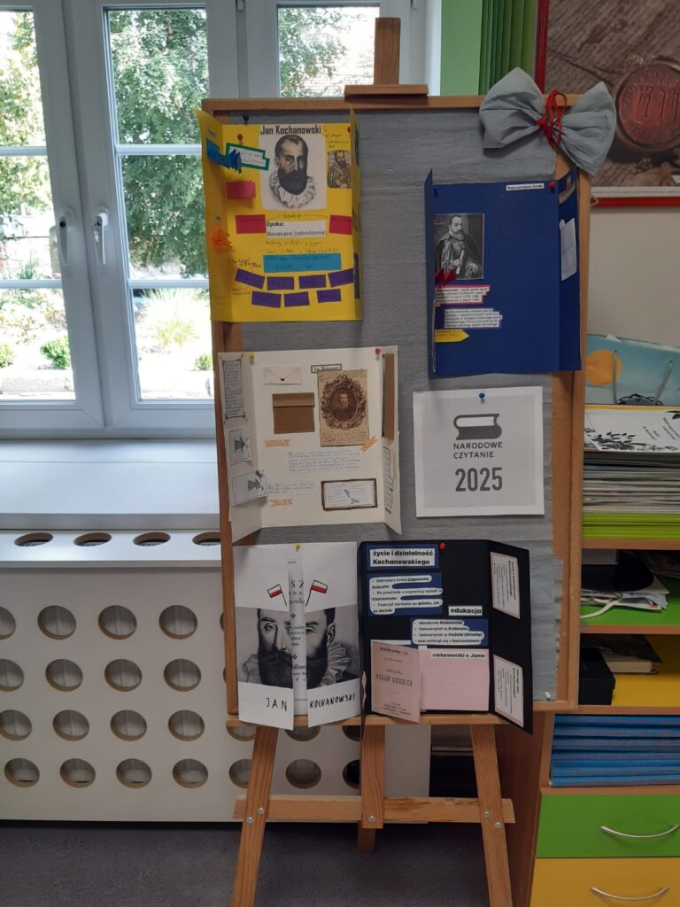 W przeddzień ogólnopolskiej inicjatywy Narodowego Czytania – w tym roku utworów Jana Kochanowskiego- klasa 7a włączyła się w akcję. Nasza recytatorka Hania przeczytała fraszki i tren młodszym kolegom z klasy 5a. Uczniowie wykonywali lapbooki poświęcone życiu i twórczości mistrza z Czarnolasu. W ten sposób powstała wystawa prac, które zaskakują formą i treścią. Zachęcamy do ich obejrzenia w sali nr 7 i bibliotece.