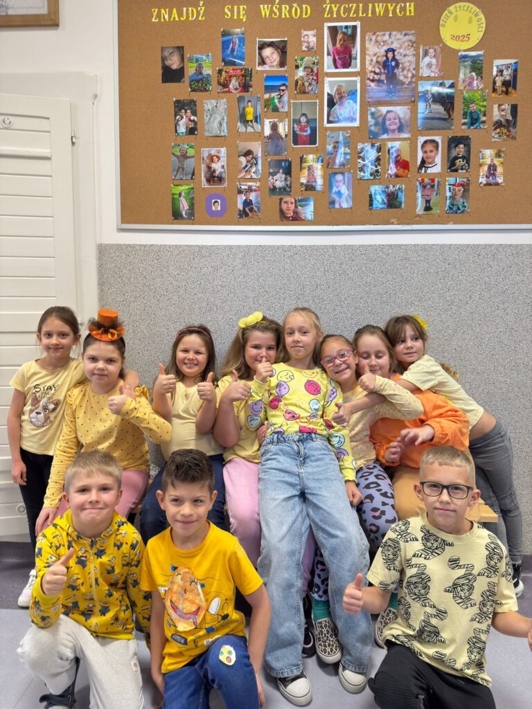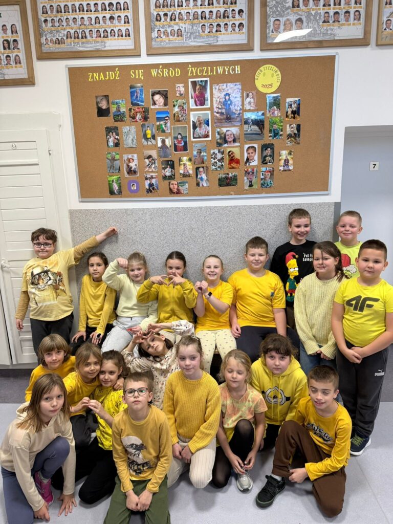 Z inicjatywy Samorządu Uczniowskiego obchodziliśmy w naszej szkole Dzień Życzliwości. Przyniesione przez uczniów zdjęcia zostały umieszczone na gazetce o tytule „Znajdź się wśród życzliwych”. Większość uczniów tego dnia ubrała się w żółte kolory. Dziękujemy uczniom za zaangażowanie i wszelkie wyrazy życzliwości.