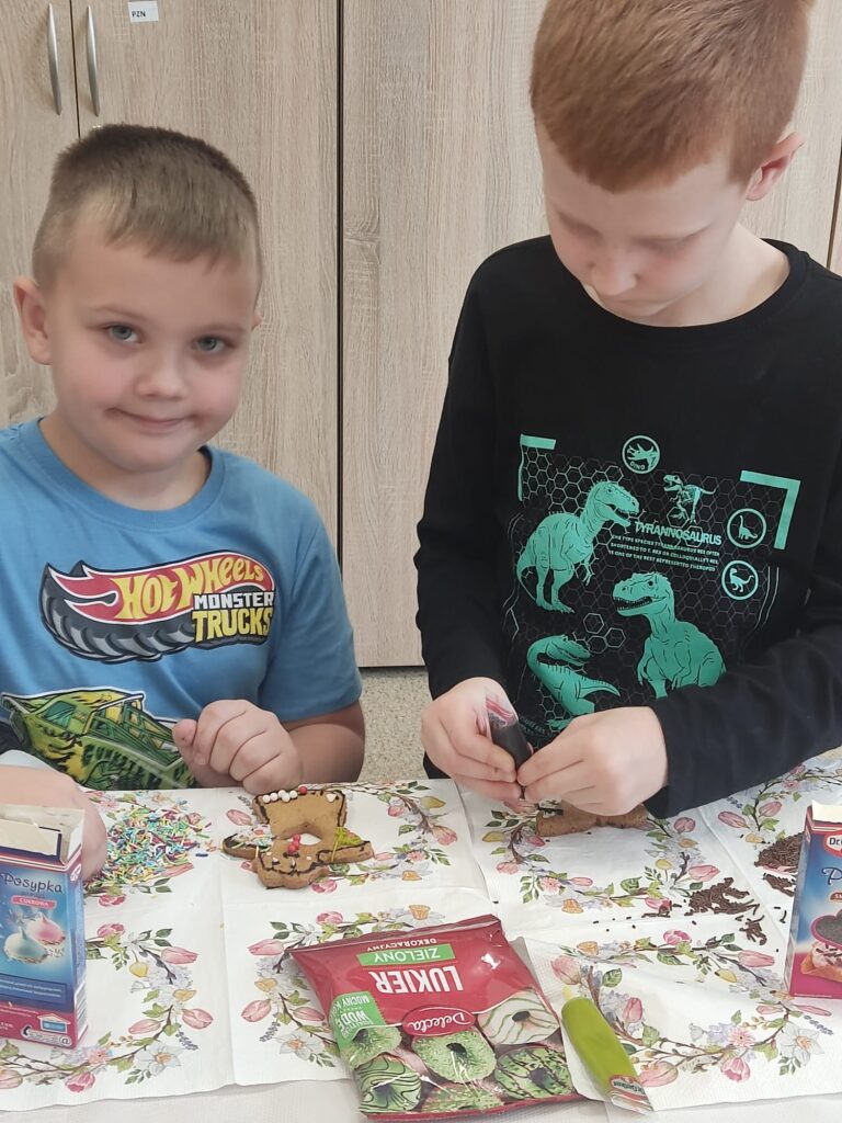 24 listopada klasa 1a została zaproszona na słodkie warsztaty robienia pierników do Stowarzyszenia Kresowian. Wałkowanie, wykrawanie, ozdabianie i w końcu jedzenie tych pyszności. Warsztaty bardzo nam się podobały, a pierniki wprowadziły nas w lekko świąteczny nastrój.