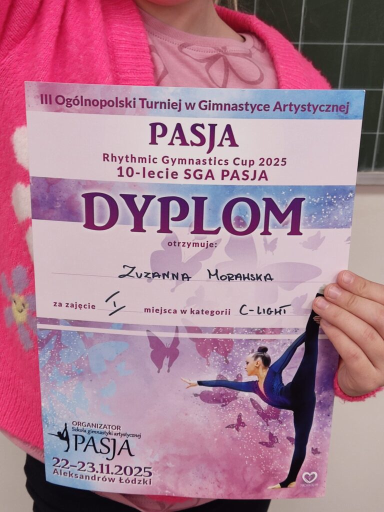 Wielkie brawa dla Zuzi Morawskiej z klasy 1 a za sukces w gimnastyce artystycznej. W ostatni weekend zaprezentowała się znakomicie, zdobywając II miejsce w VIII Międzynarodowym Turnieju PRINCESS CUP 2025. Gratulujemy i życzymy dalszych sukcesów!
