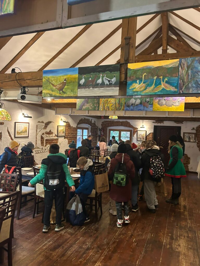 W dniu 12 grudnia uczniowie kl. 5 i 6, wraz z opiekunkami: p. E. Goldą-Marynowską, p. P. Piątek i p. A. Terlecką, udali się do Międzylesia, aby w tamtejszym zamku spotkać się ze św. Mikołajem i poczuć świąteczny klimat Uczestnicy wycieczki brali udział w grze terenowej, podczas której rozwiązywali przeróżne zadania i zagadki. Wymagało to współpracy zespołowej i dużego zaangażowania. Po pomyślnym przejściu całej trasy nastąpiło spotkanie ze św. Mikołajem, który wręczył wszystkim drobne upominki. Kolejnym punktem programu były warsztaty piernikowe, również zakończone sukcesem Wycieczka zakończyła się konsumpcją pierogów i herbatki🫖 To był udany dzień .