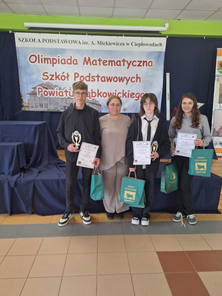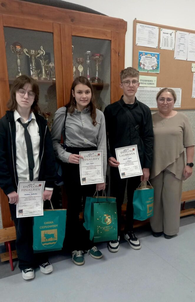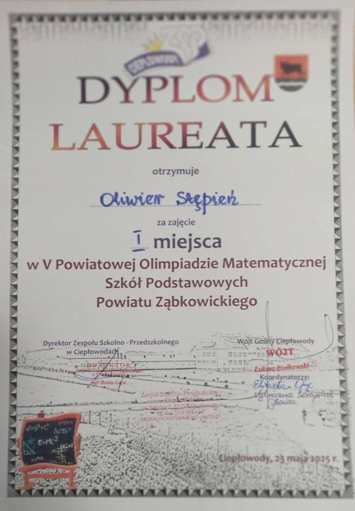 Oliwier Stępień kl. 8a zdobywając I miejsce w Olimpiadzie