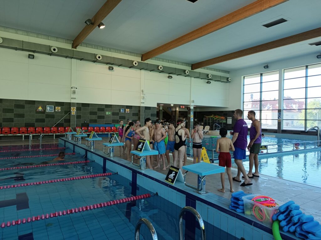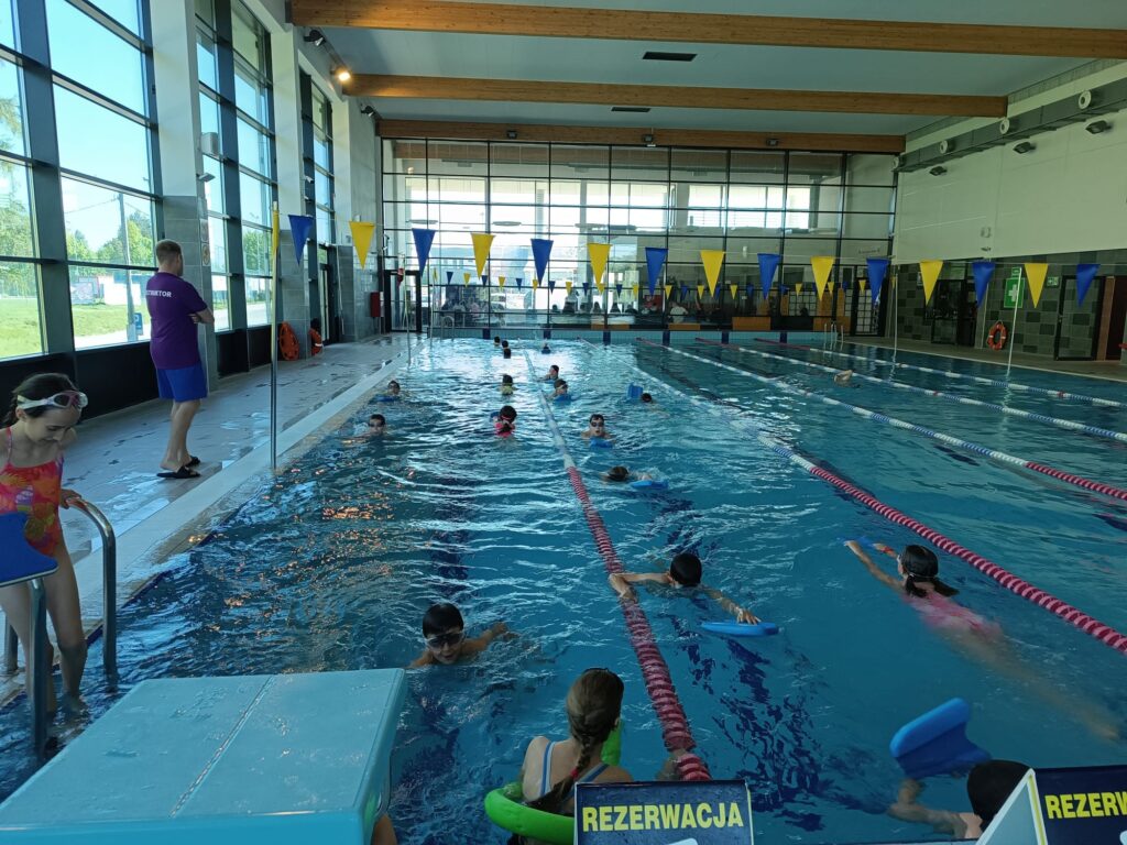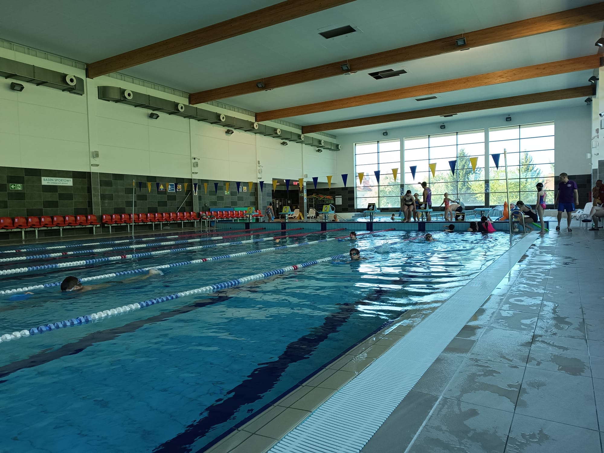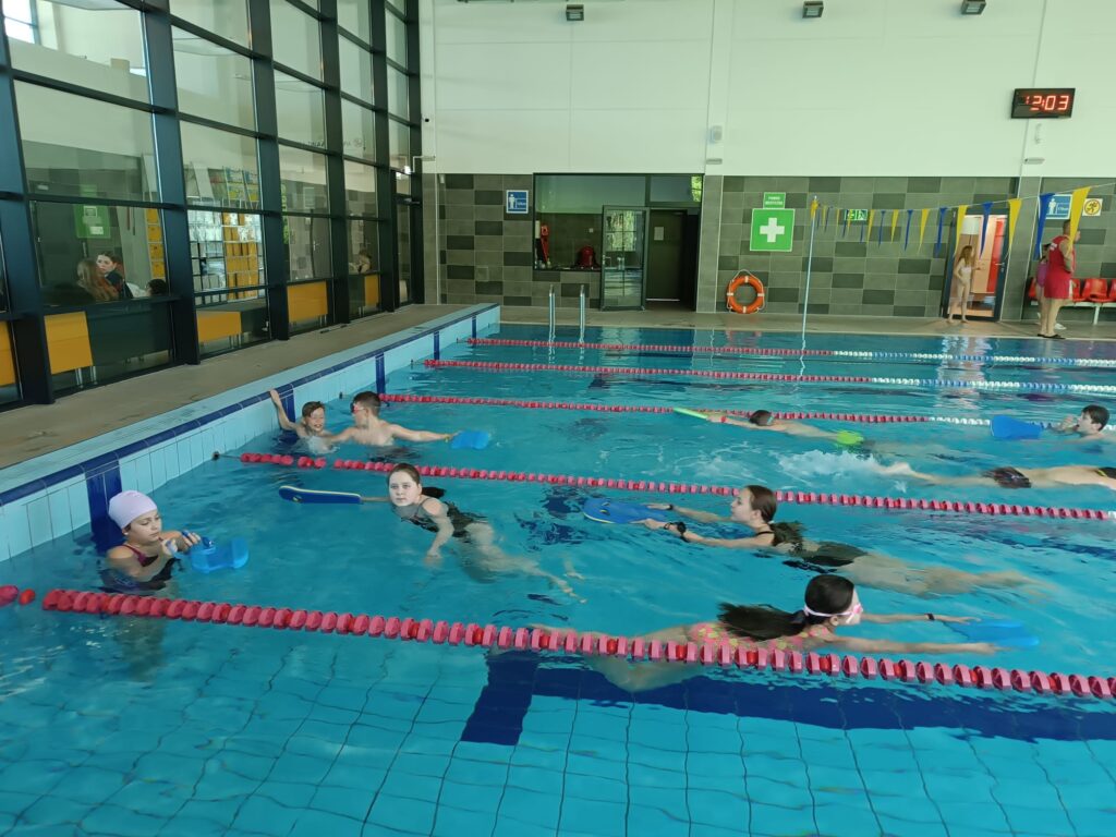 Uczniowie naszej szkoły od 10 marca realizują w ramach dwóch godzin lekcji wychowania fizycznego zajęcia na miejskim basenie pływackim, które są prowadzone przez instruktorów pływania. Program tych zajęć obejmuje naukę i doskonalenie umiejętności techniki kraula na grzbiecie i piersiach oraz skoków do wody. W wyznaczonym czasie wolnym dzieci mają okazję skorzystać ze zjeżdżalni typu Anakonda, wanny z hydromasażem oraz basenu rekreacyjnego.