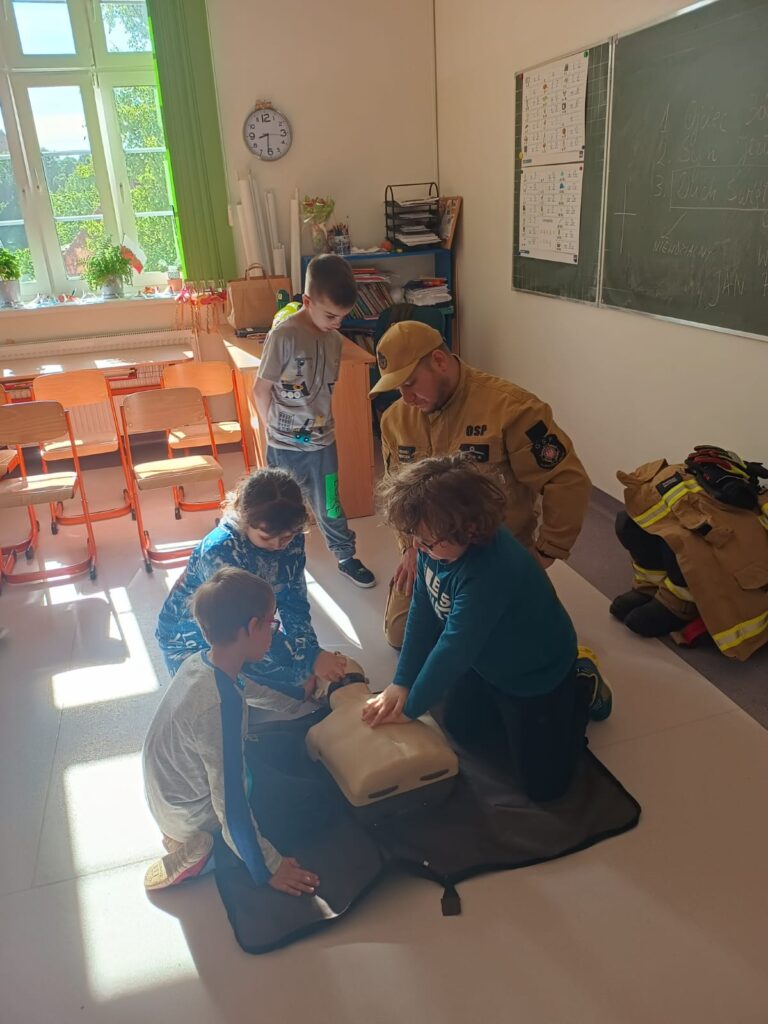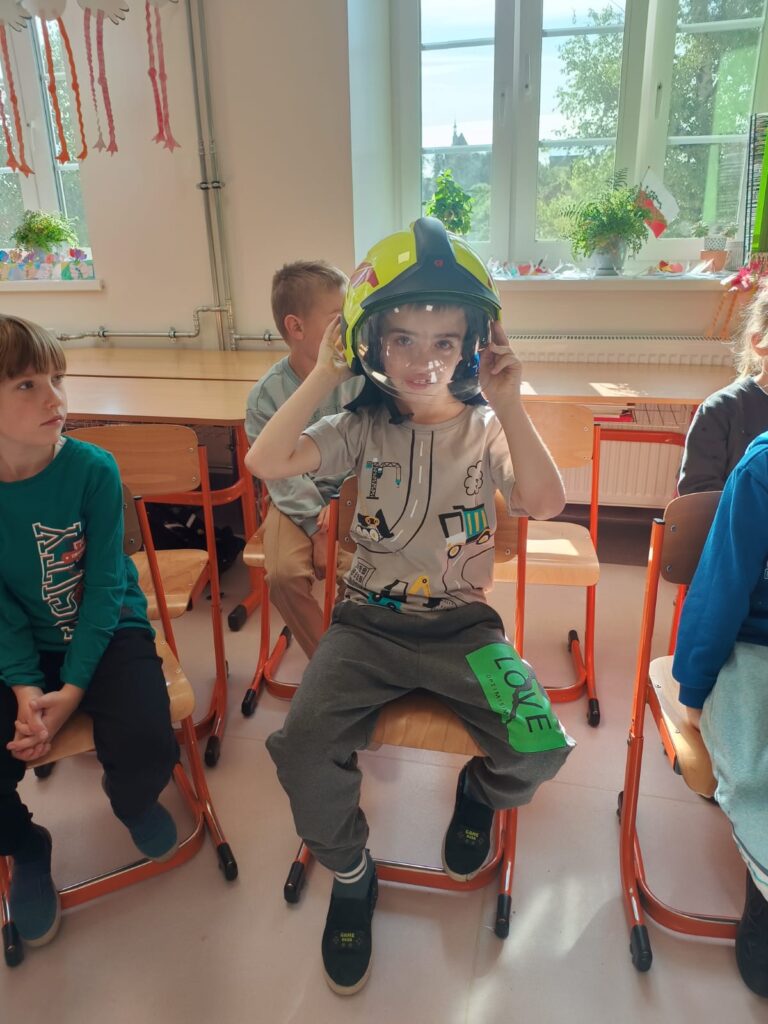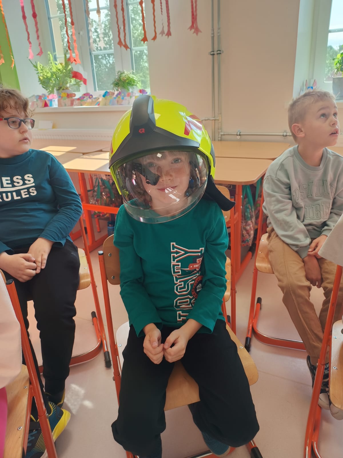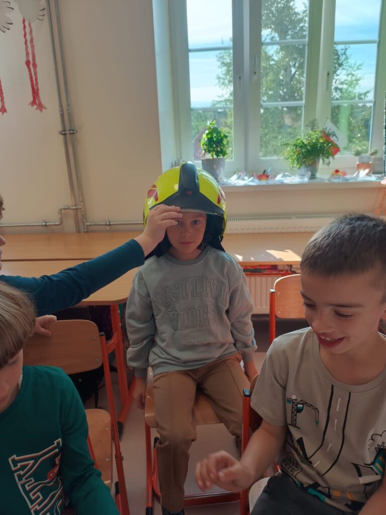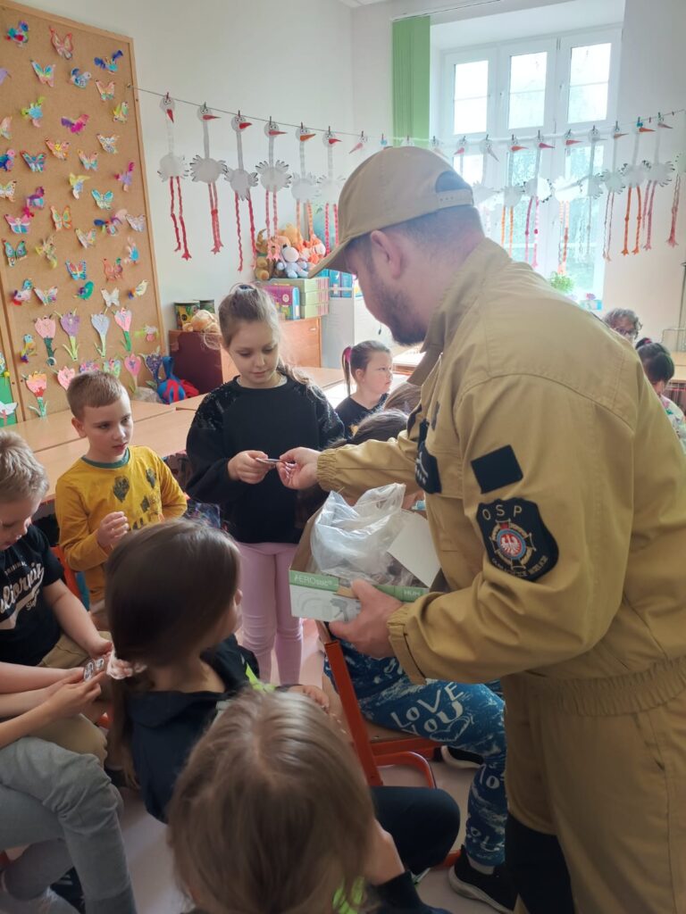 SPOTKANIE KLASY 1A ZE STRAŻAKAMI Z OCHOTNICZEJ STRAŻY POŻARNEJ W OLBRACHCICACH WIELKICH - maj 2025