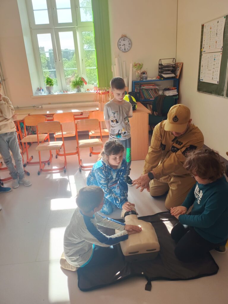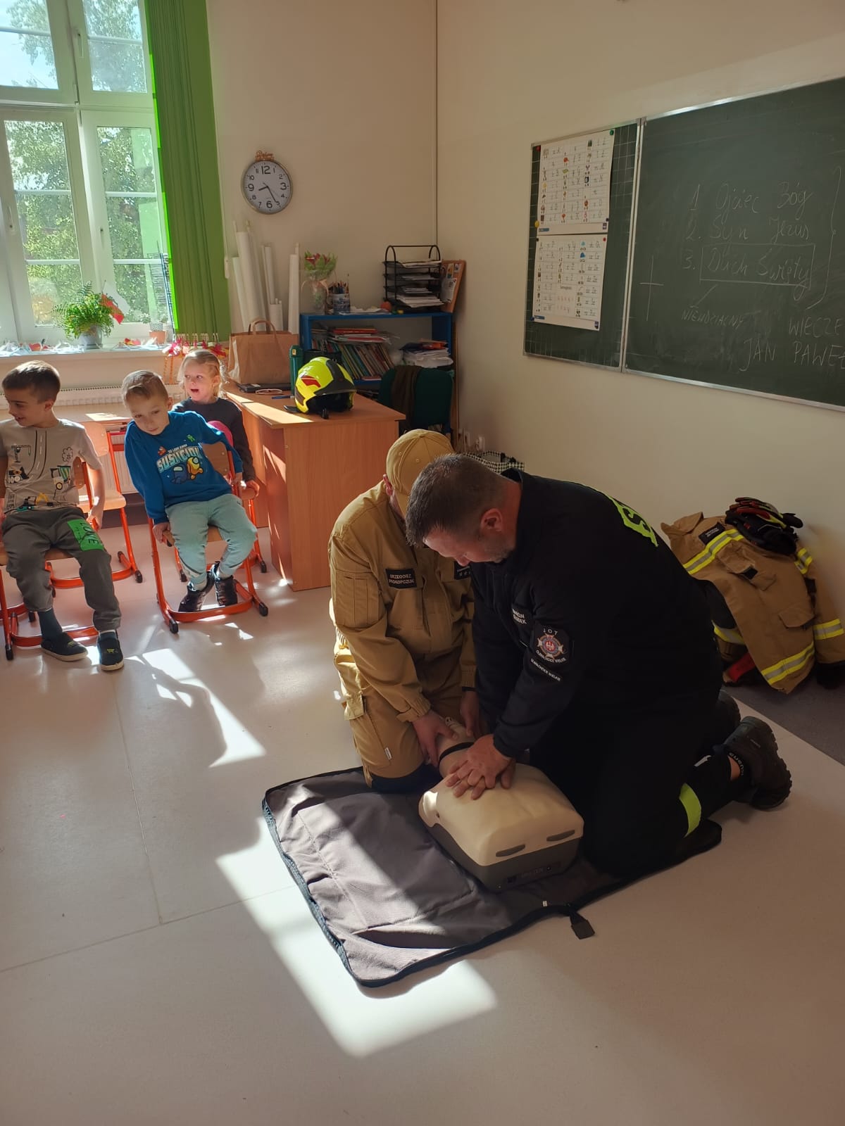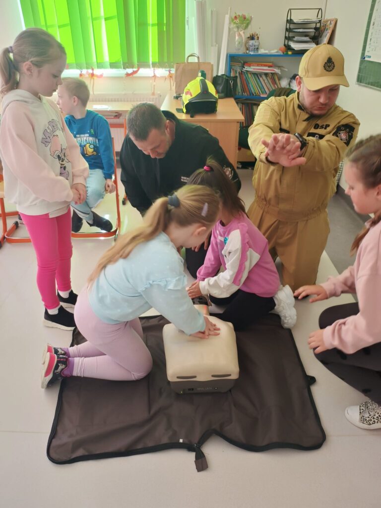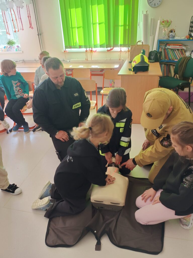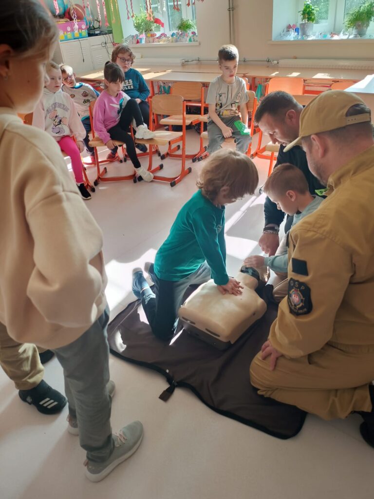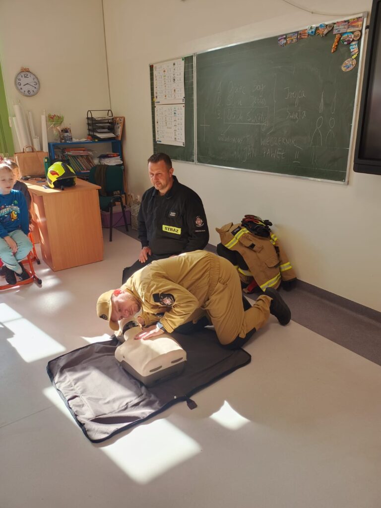 SPOTKANIE KLASY 1A ZE STRAŻAKAMI Z OCHOTNICZEJ STRAŻY POŻARNEJ W OLBRACHCICACH WIELKICH - maj 2025