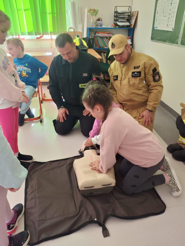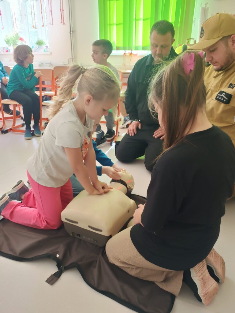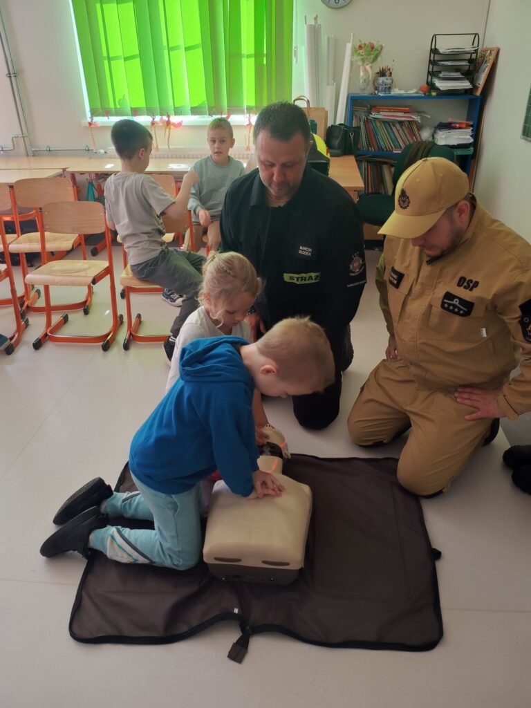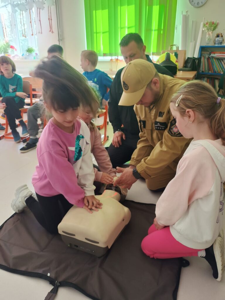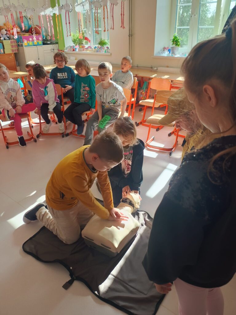 W naszym przedszkolu miały miejsce bardzo ciekawe zajęcia z zakresu pierwszej pomocy. Pani Magdalena Kolanko w sposób bardzo przystępny i obrazowy udzieliła przedszkolakom wskazówek, jak pomóc sobie i innym w różnych codziennych sytuacjach przy małych wypadkach jak i tych, zagrażających życiu. Ćwiczenia praktyczne również mamy za sobą.