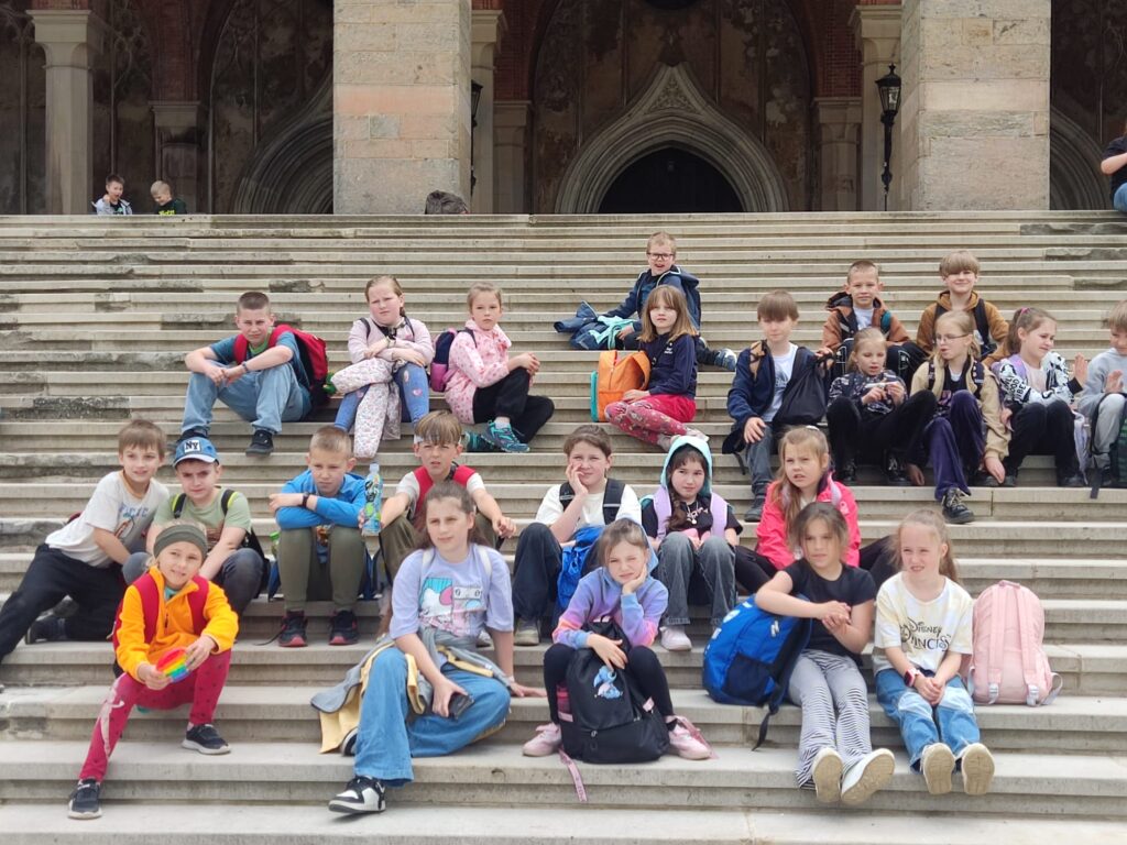 28 maja klasy druga i trzecia wybrały się do Pałacu Marianny Orańskiej w Kamieńcu Ząbkowickim. Dodatkową atrakcją był przejazd pociągiem oraz przejście malowniczą dróżką przez las. Pani przewodnik ciekawie opowiadała historię pałacu i jego mieszkańców. Potem były lody, zabawy i harce pod zamkiem. To był świetny dzień!
