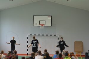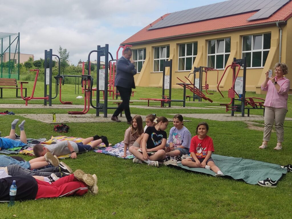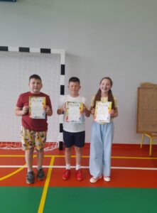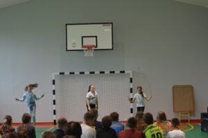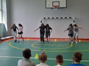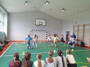 Uczniowie rywalizowali w konkurencjach sportowych przygotowanych przez p. P. Piątek i p. J. Machnika.