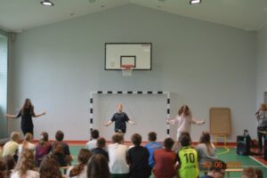 Kolejnego dnia odbyły się w naszej szkole warsztaty języka angielskiego oraz warsztaty artystyczne. Wspólnie uczyliśmy się też układu choreograficznego (hip-hop) pod okiem instruktorki ze Szkoły tańca pani Hanny Zielińskiej. Na koniec zatańczyliśmy wszyscy Belgijkę.