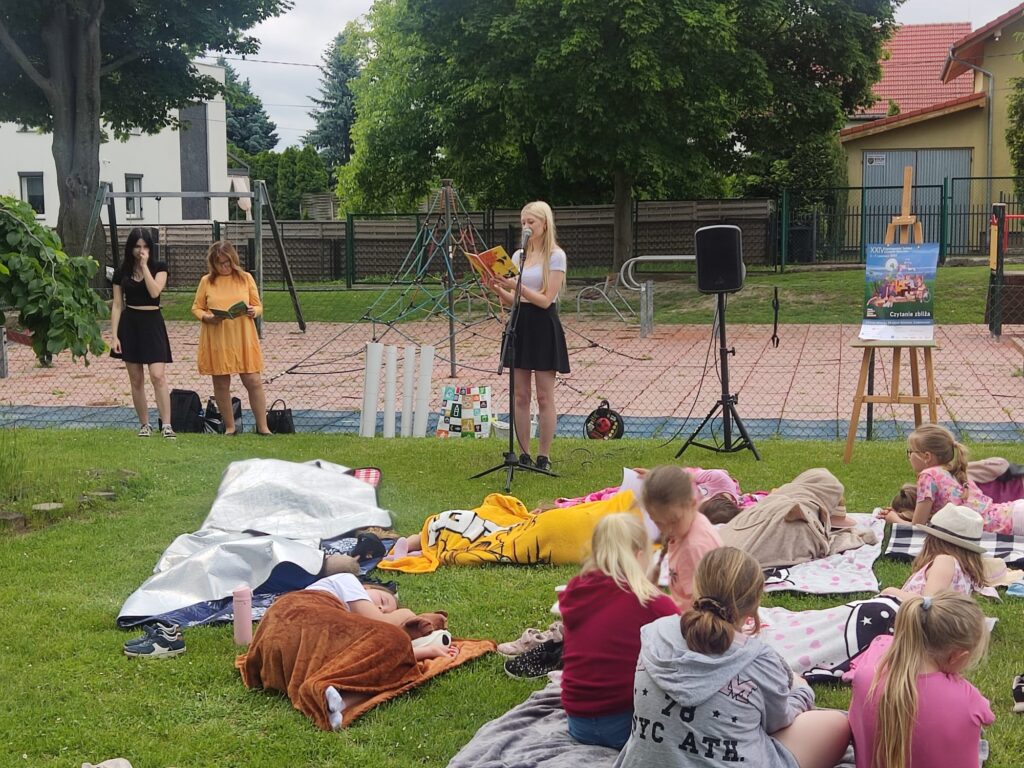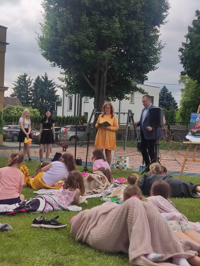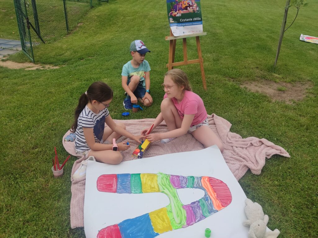 Dzisiaj klasa 2 i 3 uczestniczyły w bardzo ciekawej akcji z cyklu Cała Polska czyta dzieciom pod hasłem Czytanie zbliża. Najpierw dzieci wysłuchały fragmentów książki G. Kasdepke ” Detektyw Pozytywka”. Potem uczestniczyły w warsztatach plastycznych tworząc przepiękny napis akcji. Pogoda dopisała, humory też. Dziękujemy Bibliotece Miejskiej i wszystkim, którzy przyczynili się do tego wydarzenia.