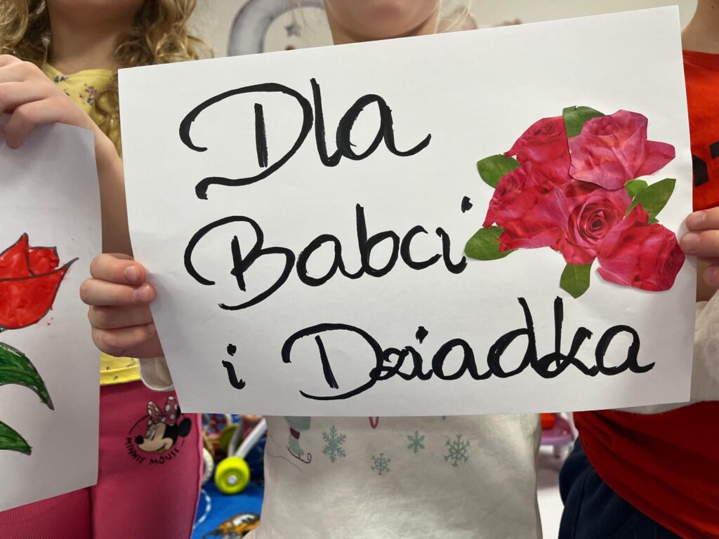 Przez całe dwa tygodnie dzieci przygotowywały laurki , upominki i wykonywały prace plastyczne , aby godnie uczcić to ważne święto . A dzisiaj życzą swoim Kochanym Babciom i Dziadkom wszystkiego najpiękniejszego w życiu i sto lat w zdrowiu !