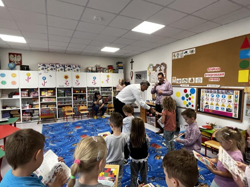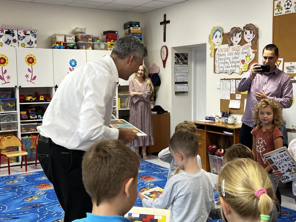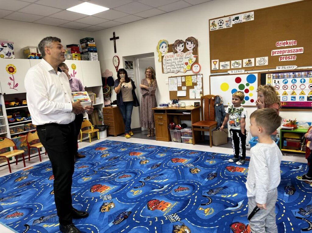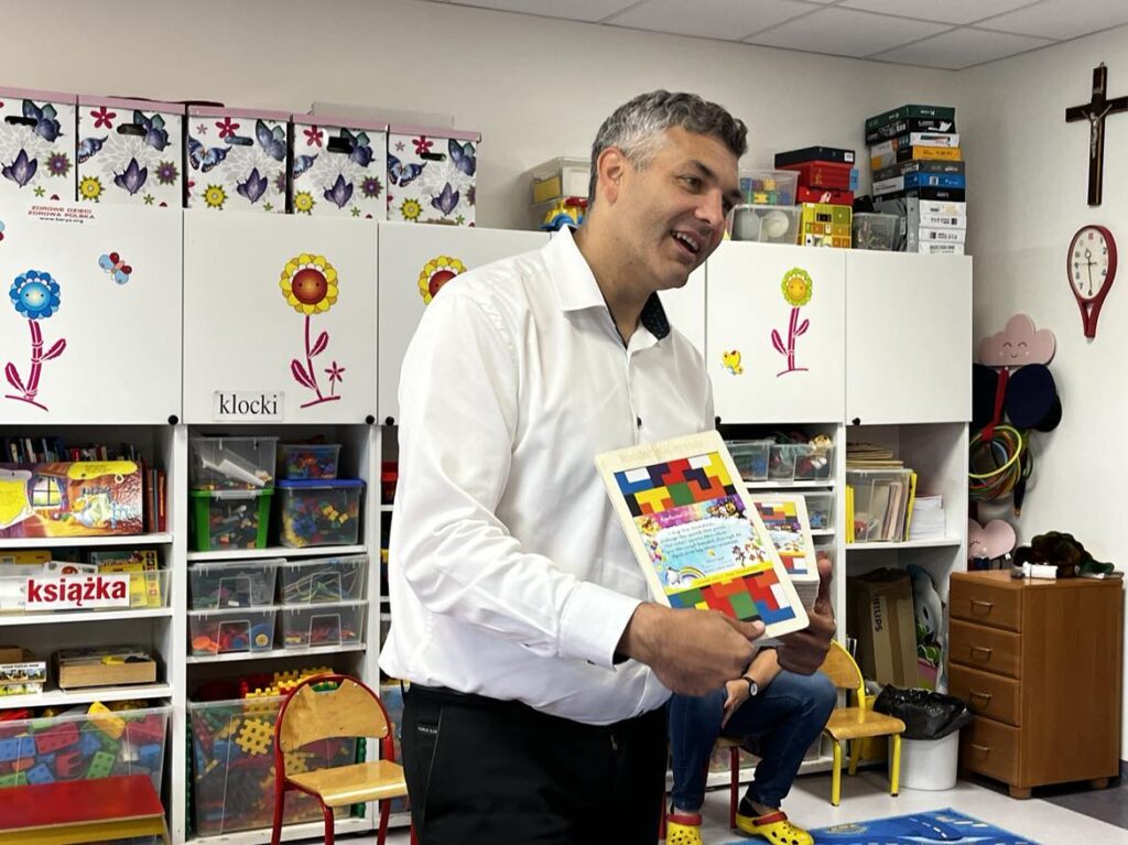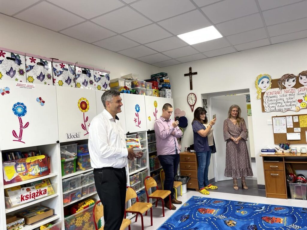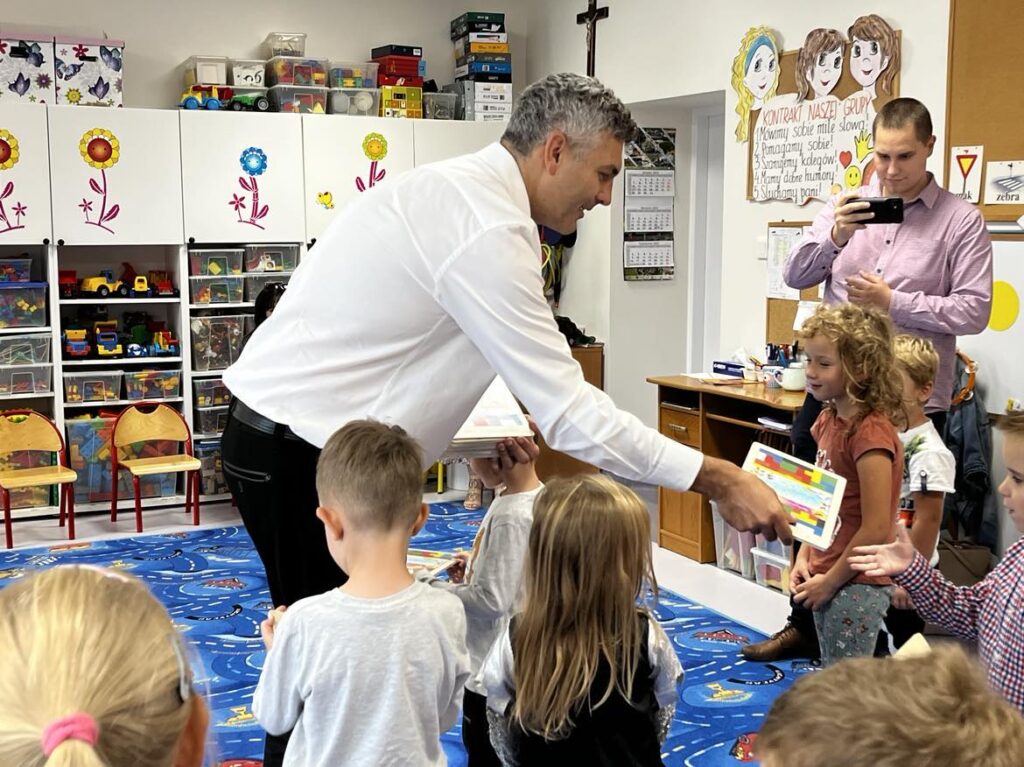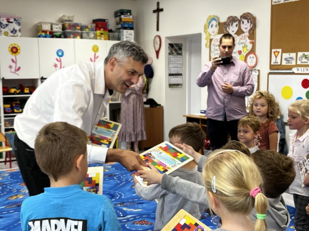 I z tej okazji już 19 września zawitał w naszych progach burmistrz, pan Marcin Orzeszek, który jak co roku obdarował nasze przedszkolaczki wspaniałymi prezentami! Dzięki temu nasze święto było jeszcze piękniejsze! Dziękujemy !