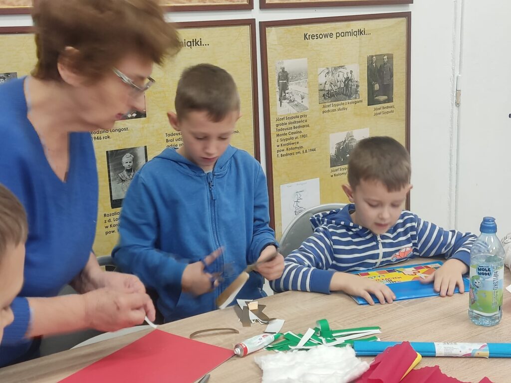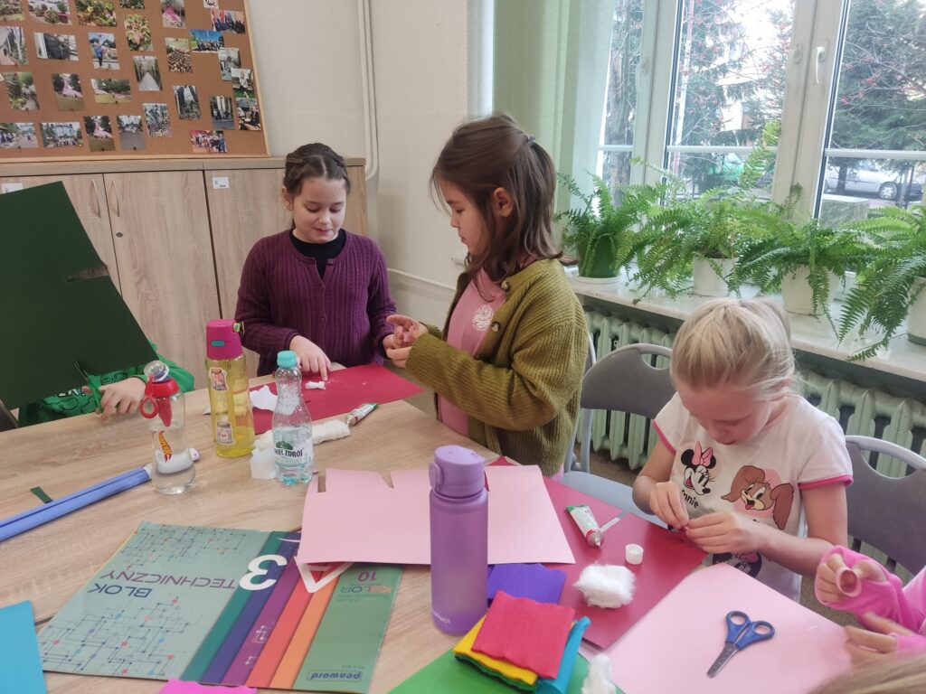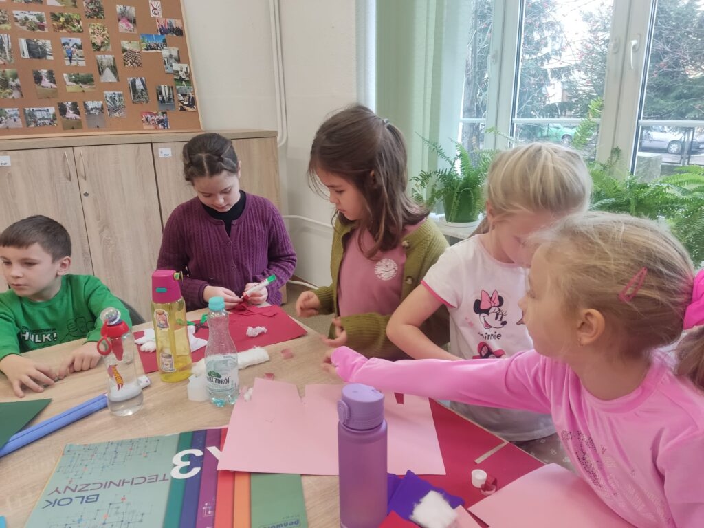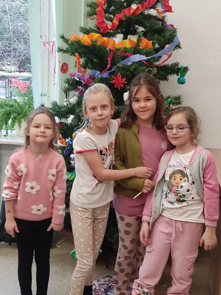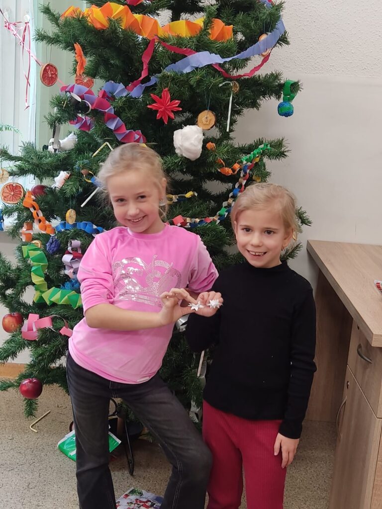 1 grudnia dzieci z klasy 1A brały udział w warsztatach pod hasłem „Zabawki na choinkę z dawnych lat ’. Panie ze Stowarzyszenia Kresowian zaprezentowały przykładowe dekoracje. Dzieci z dużym zaangażowaniem tworzyły swoje ozdoby: łańcuchy, Mikołaje, gwiazdki. Potem wspólnie ubrały choinkę. Była to ciekawa lekcja historii i sztuki ludowej, która wprowadziła uczestników w świąteczny nastrój.