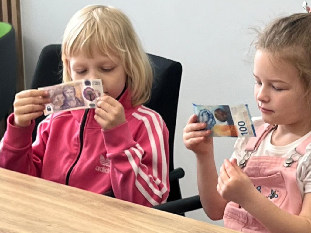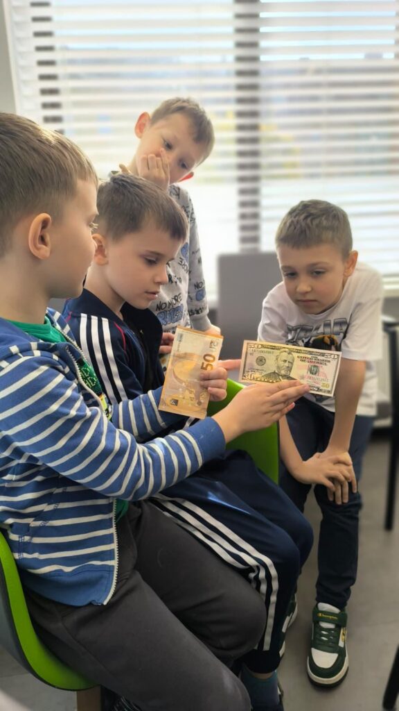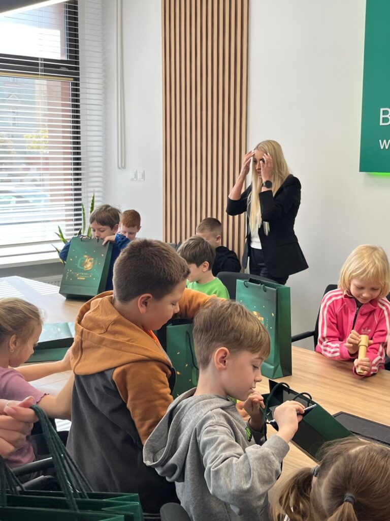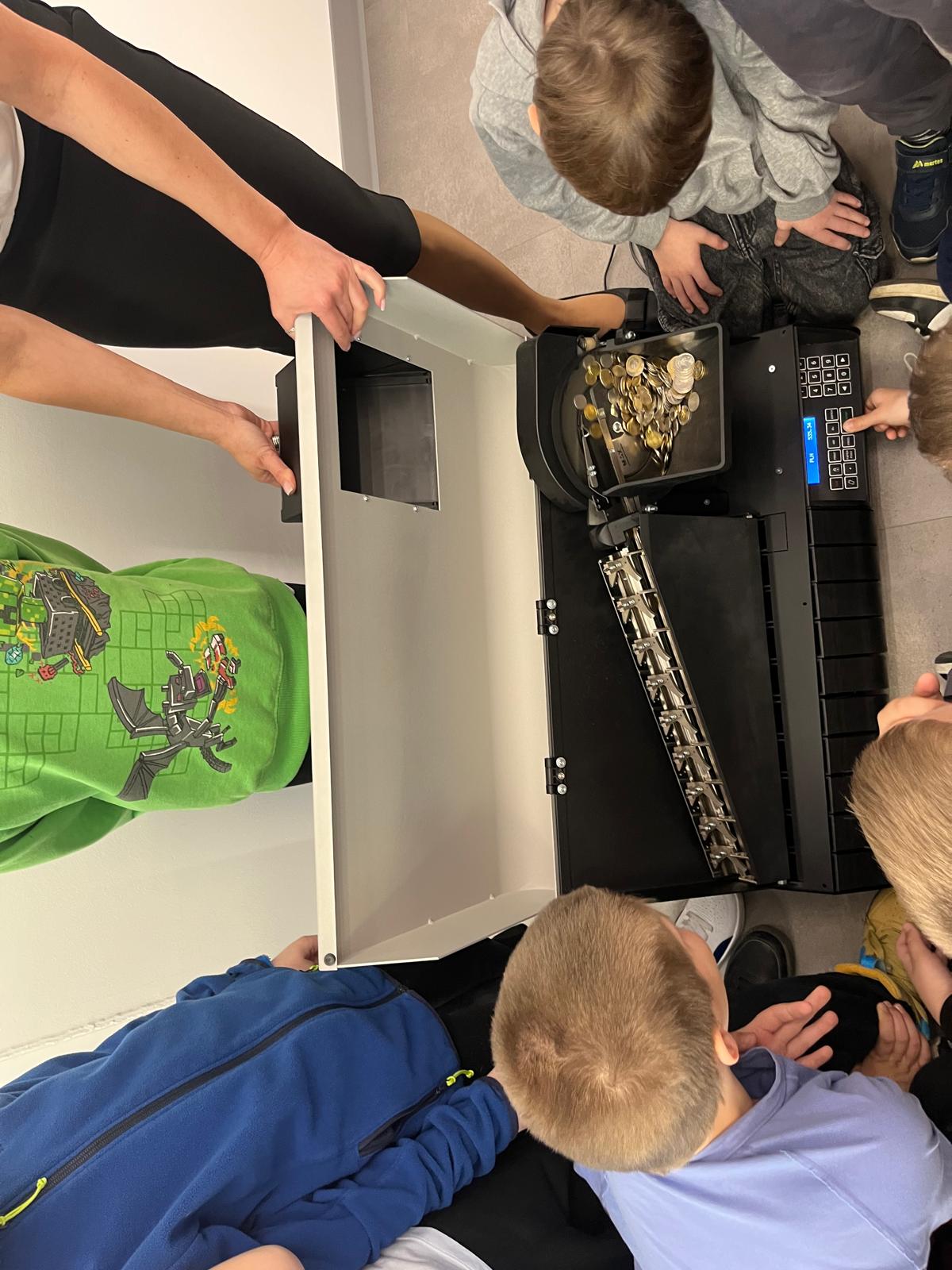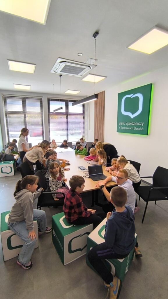 Klasa 1A uczestniczyła w bardzo ciekawej i praktycznej lekcji w Banku Spółdzielczym. Poznali, jak działa bank i na czym polega oszczędzanie. Pracownicy w ciekawy sposób opowiedzieli o swojej pracy oraz zasadach bezpiecznego korzystania z pieniędzy. Dzieci z dużym zainteresowaniem uczestniczyły w tym spotkaniu, oglądały albumy z różnymi monetami i banknotami. Największą atrakcją cieszyły się urządzenia do liczenia pieniędzy. Dziękujemy pracownikom banku za serdeczne przyjęcie.