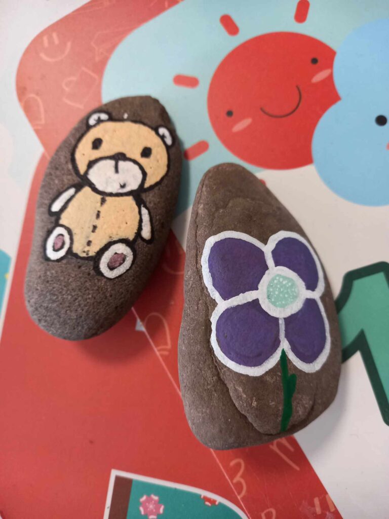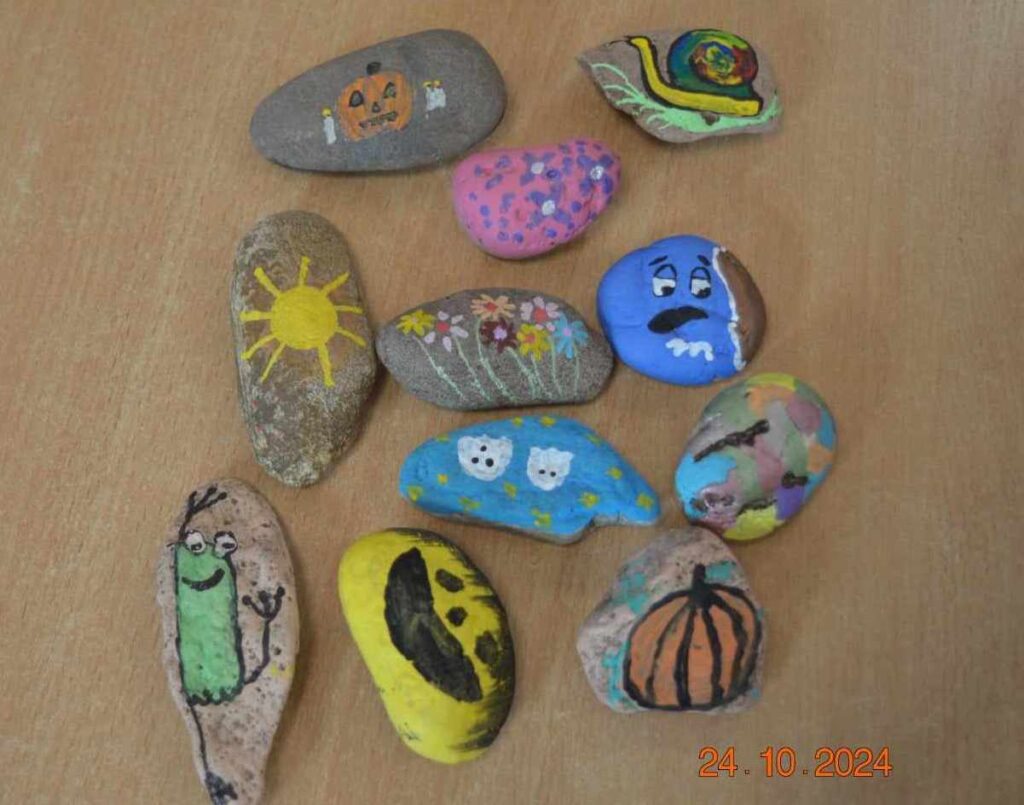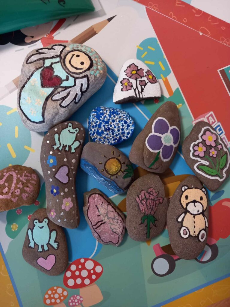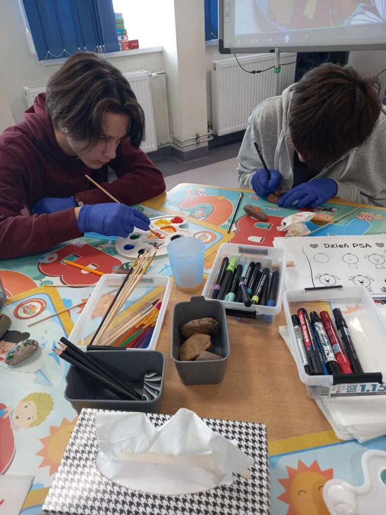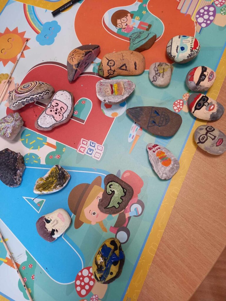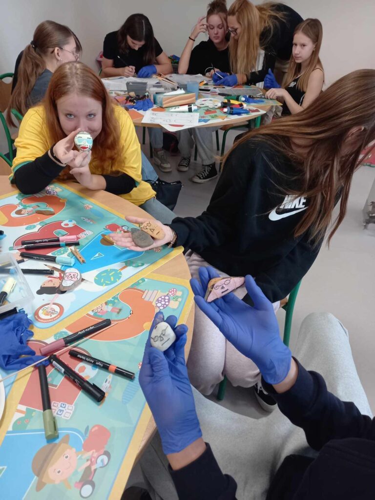 Zajęcia artystyczne poprowadziła pani Anna Kownacka, przygotowując dla uczniów warsztaty malowania kamieni farbami akrylowymi. Zajęcia sportowe przygotowala pani Patrycja Piątek.
