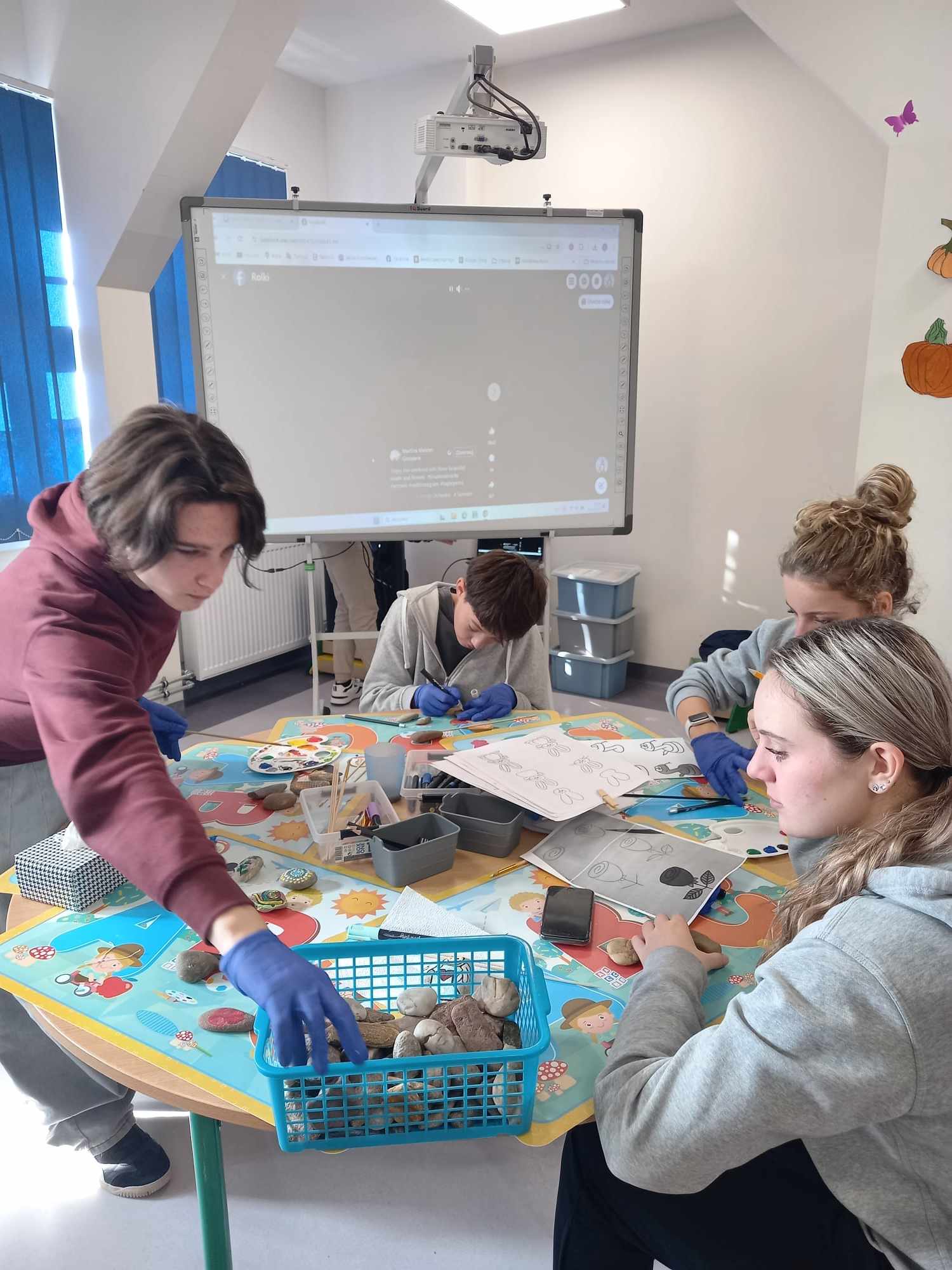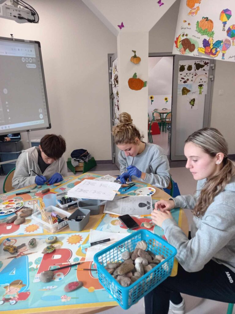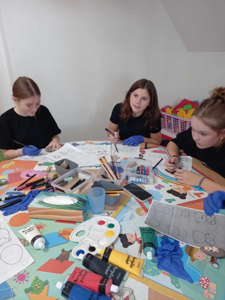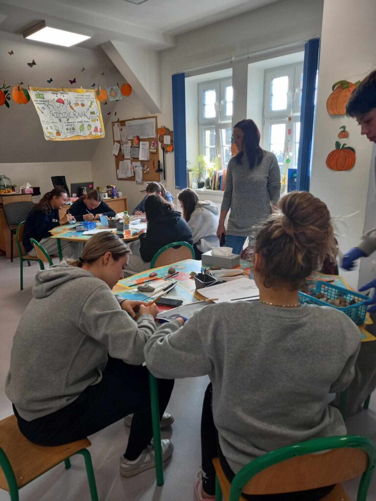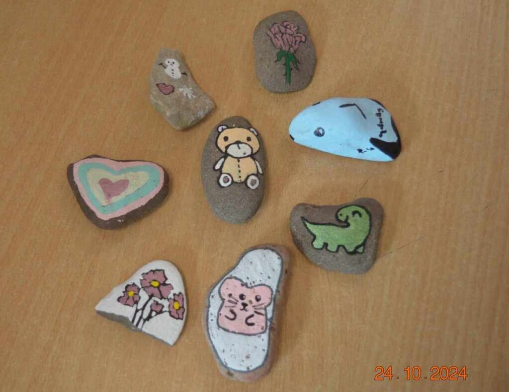 Zajęcia artystyczne poprowadziła pani Anna Kownacka, przygotowując dla uczniów warsztaty malowania kamieni farbami akrylowymi. Zajęcia sportowe przygotowala pani Patrycja Piątek.