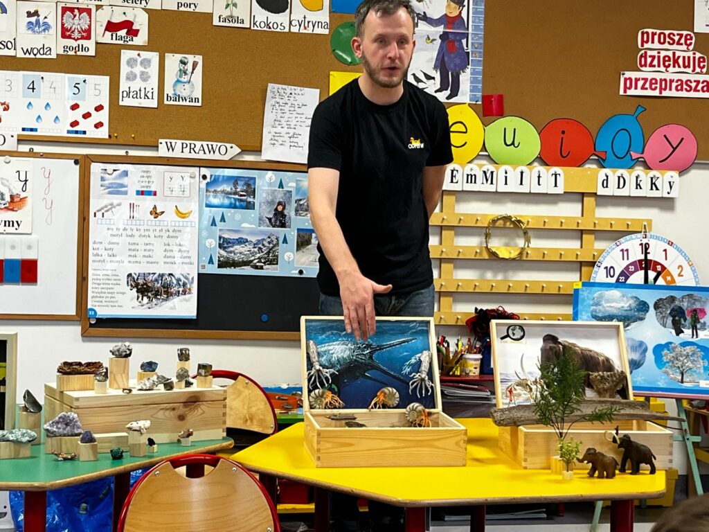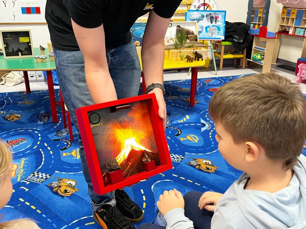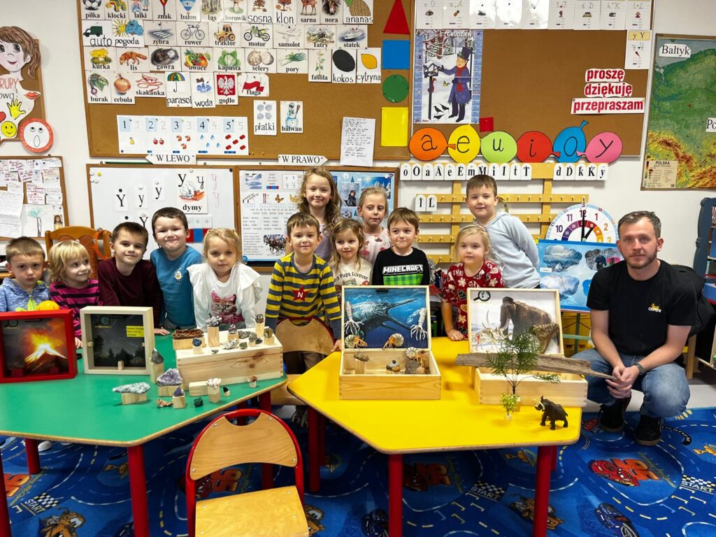 Prawdziwy ząb mamuta? Mrówka zamknięta w bursztynie? Zastygnięta lawa wulkaniczna? Fragmenty meteorytów ?Tak! To wszystko znalazło się w naszej sali przedszkolnej podczas bardzo ciekawych i pouczających warsztatów przyrodniczych pod hasłem „ Geologia ,czyli niesamowite skarby ziemi”