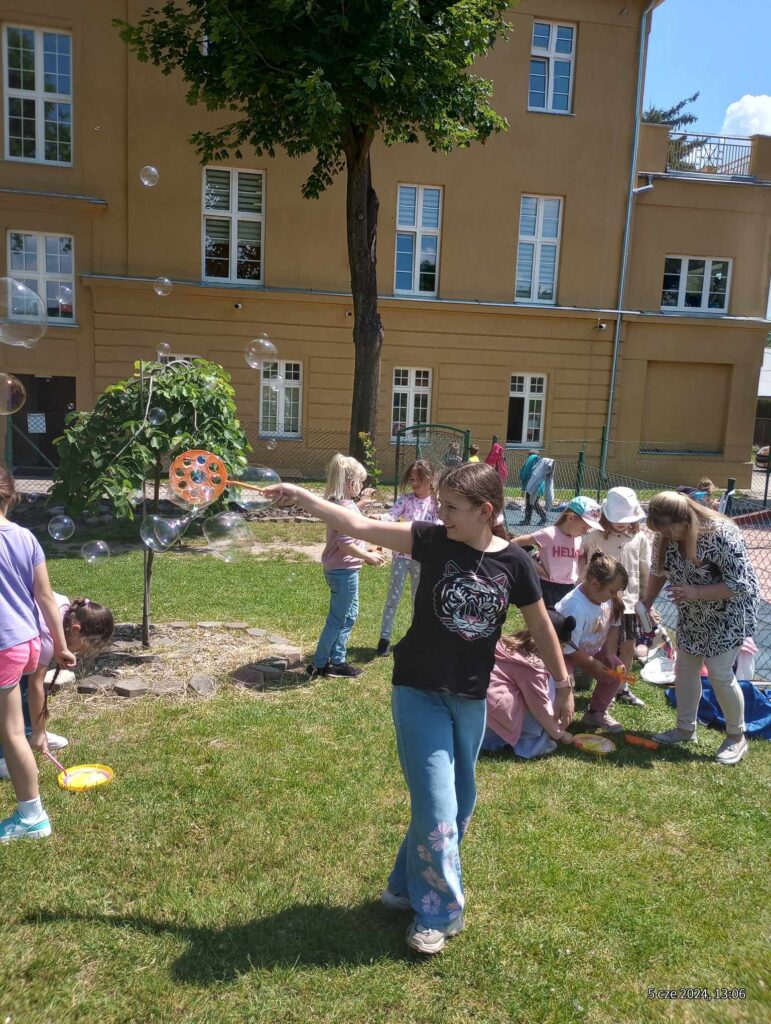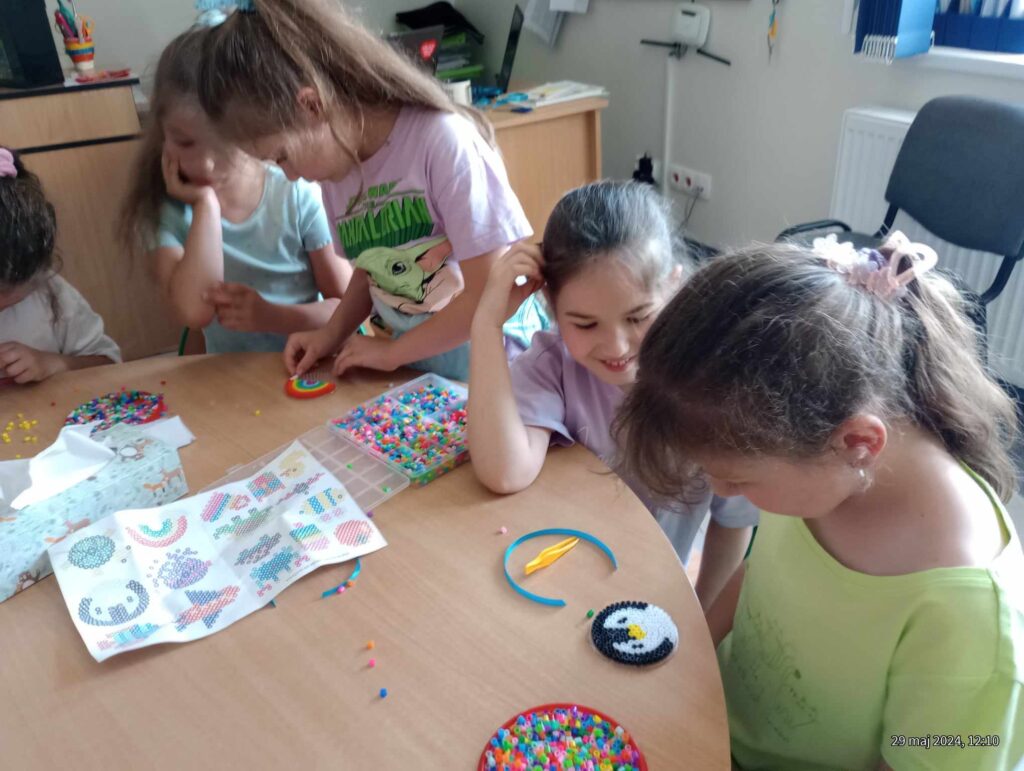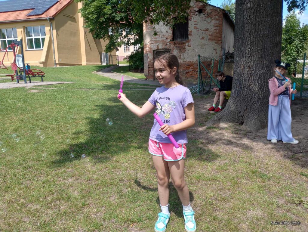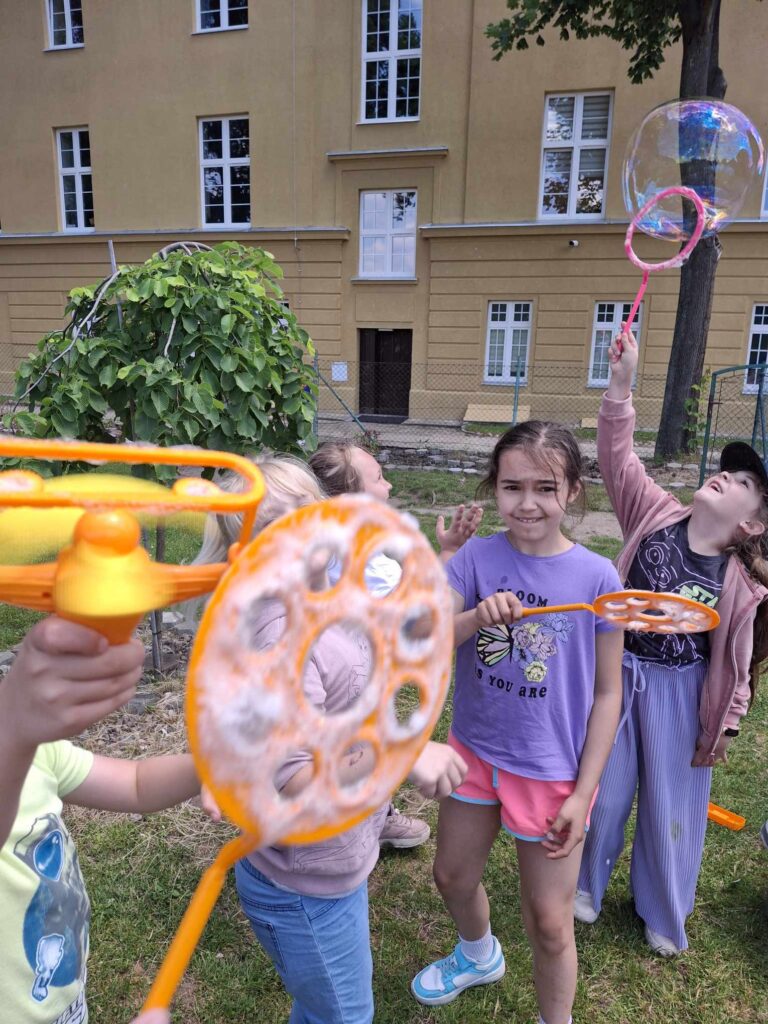 Za nami bardzo ważne święto – Dzień Dziecka. Z tej okazji na uczniów uczęszczających do świetlicy szkolnej czekało kilka niespodzianek. Mieli okazję wykonać wspaniałe breloczki z koralików PYSSLA, które każdy mógł zabrać do domu. Były harce przy muzyce, gry i zabawy w szkolnym ogrodzie i niezapomniane puszczanie baniek mydlanych.