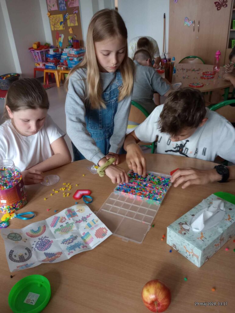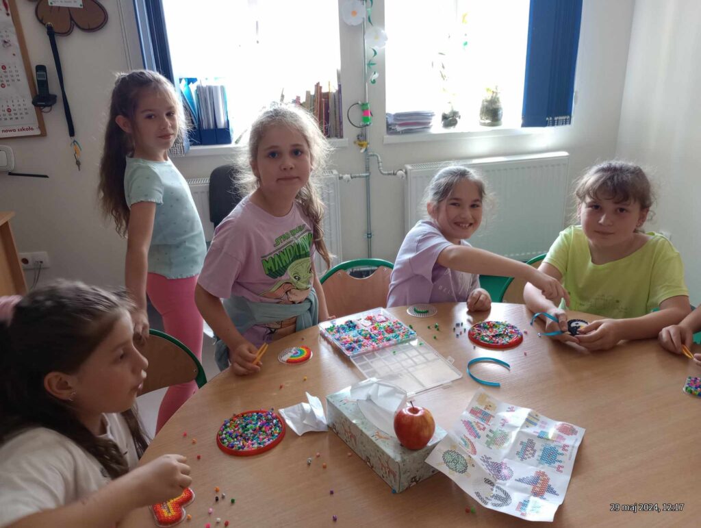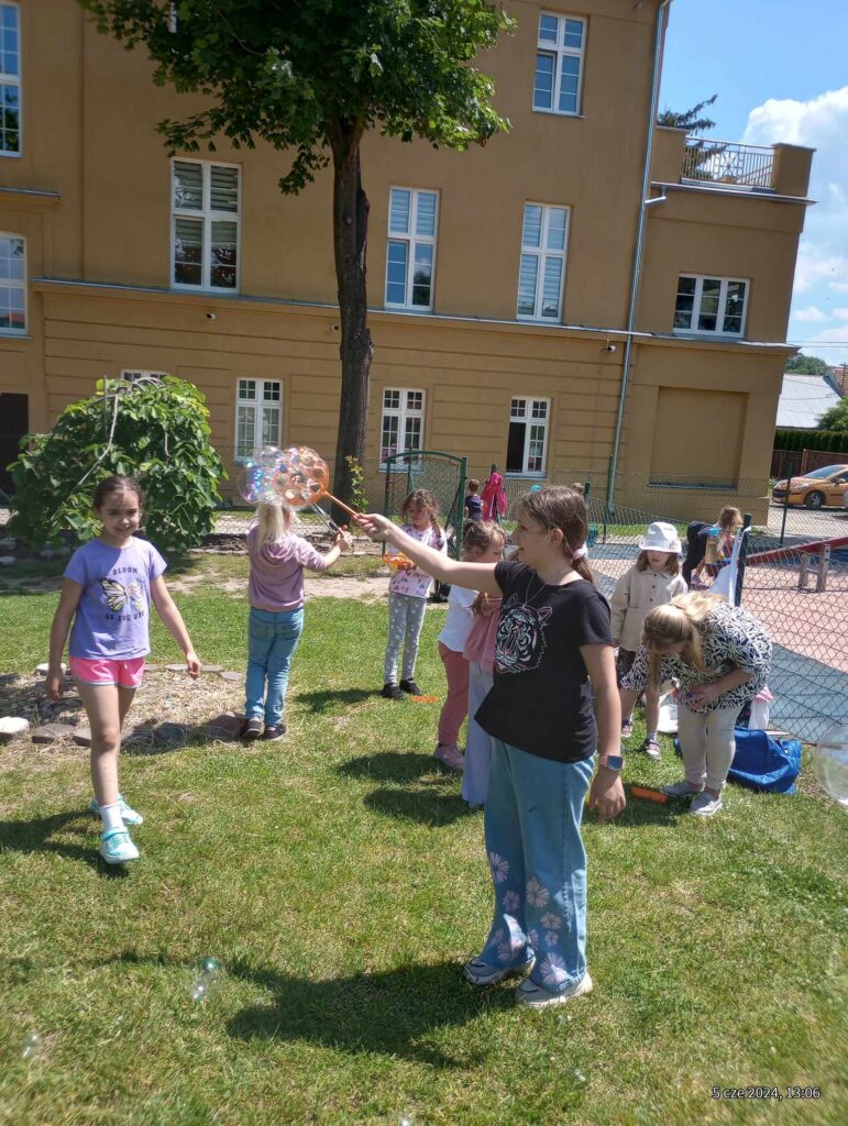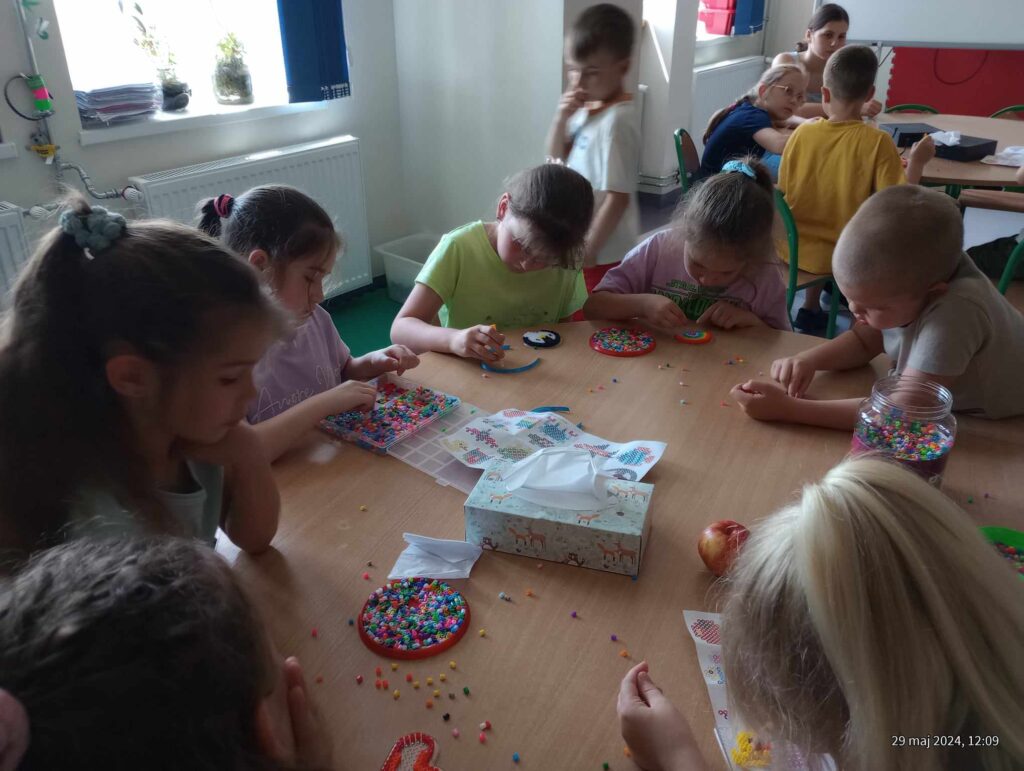 Za nami bardzo ważne święto – Dzień Dziecka. Z tej okazji na uczniów uczęszczających do świetlicy szkolnej czekało kilka niespodzianek. Mieli okazję wykonać wspaniałe breloczki z koralików PYSSLA, które każdy mógł zabrać do domu. Były harce przy muzyce, gry i zabawy w szkolnym ogrodzie i niezapomniane puszczanie baniek mydlanych.